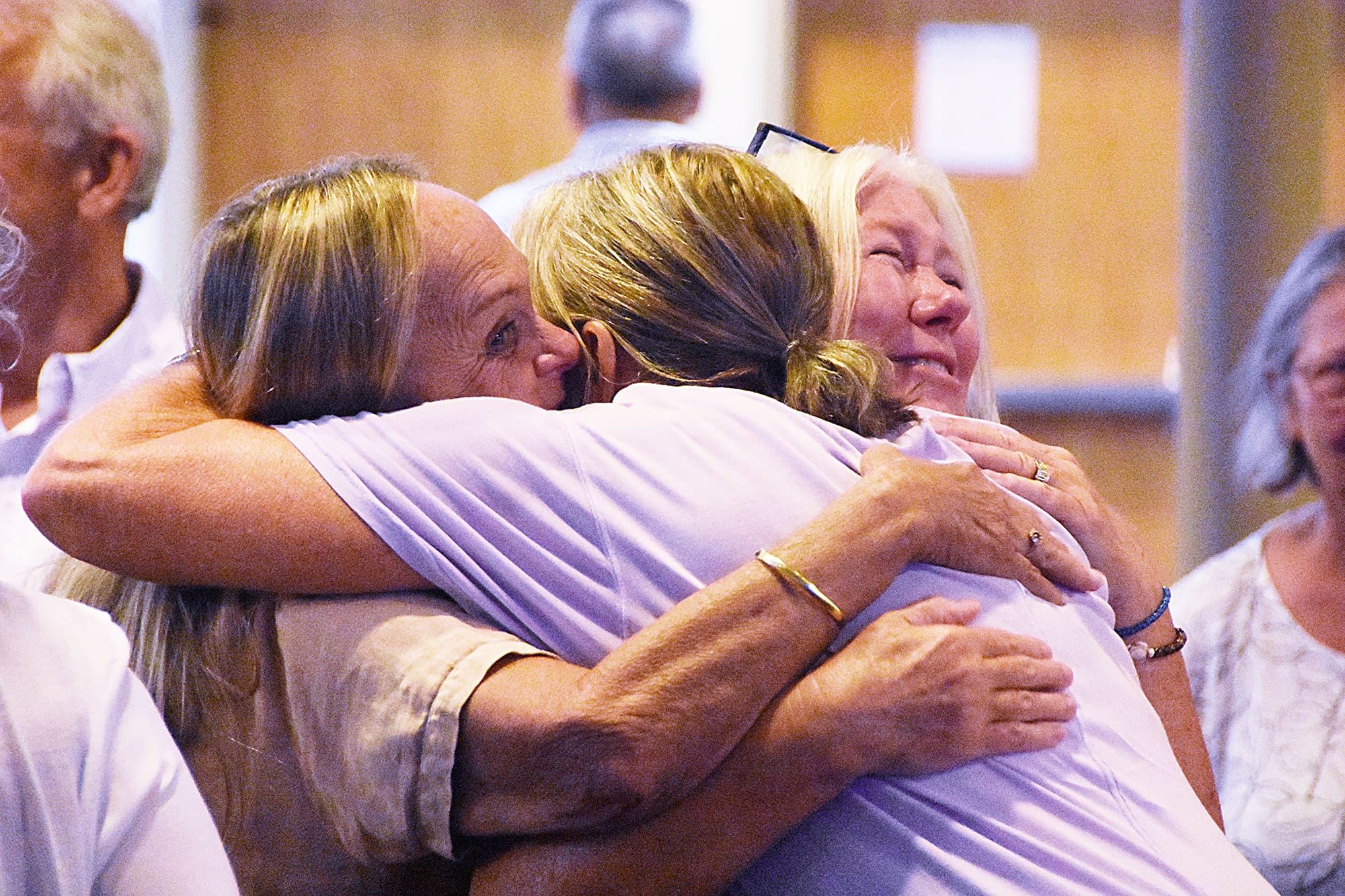 Three residents celebrate after the board approves the appropriation of funds to purchase the land for the Soundside conservation project.