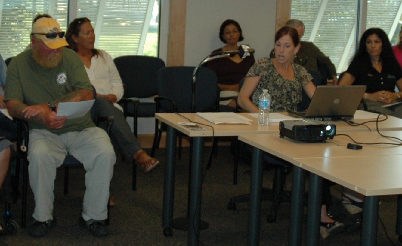 Sheila Harris, county grants and special projects director, explains details about the county’s pursuit of a grant to fund improvements at Navarre Park at a Sept. 12 public meeting.