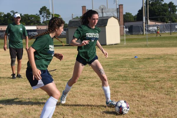 She uses her skill to get past a defender, which isn’t a surprise as her coach at Pensacola State, Mark Yepshin, says the former Navarre Raider is ‘really, really nifty with her feet.’