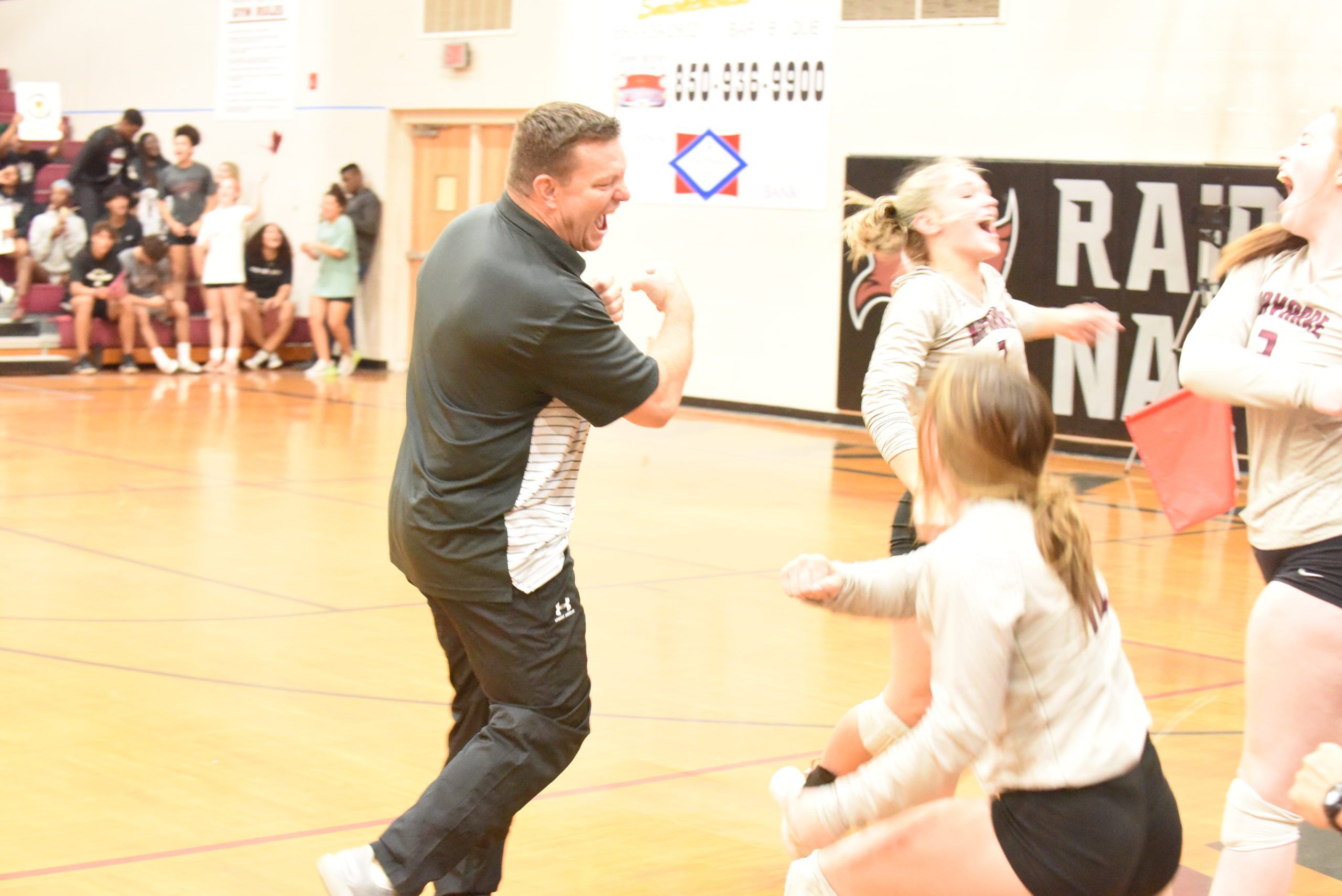 Players on the bench jumped up and down, cheering on their teammates, their smiles growing wider as Navarre inched closer to victory. On the court, the Raiders hit hard, executed passes, serves and sets and played the kind of defense it needed to play to win in a pressure-packed moment.