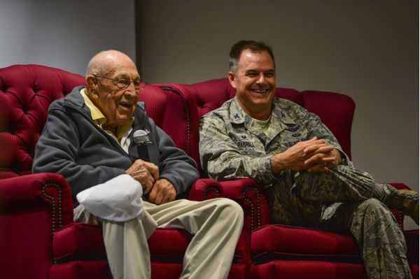 Retired Lt. Col. Richard E. Cole, co-pilot to Lt. Col. James H. “Jimmy” Doolittle during the Doolittle Raid, was at the 319th Special Operations Squadron for a Q&A session.