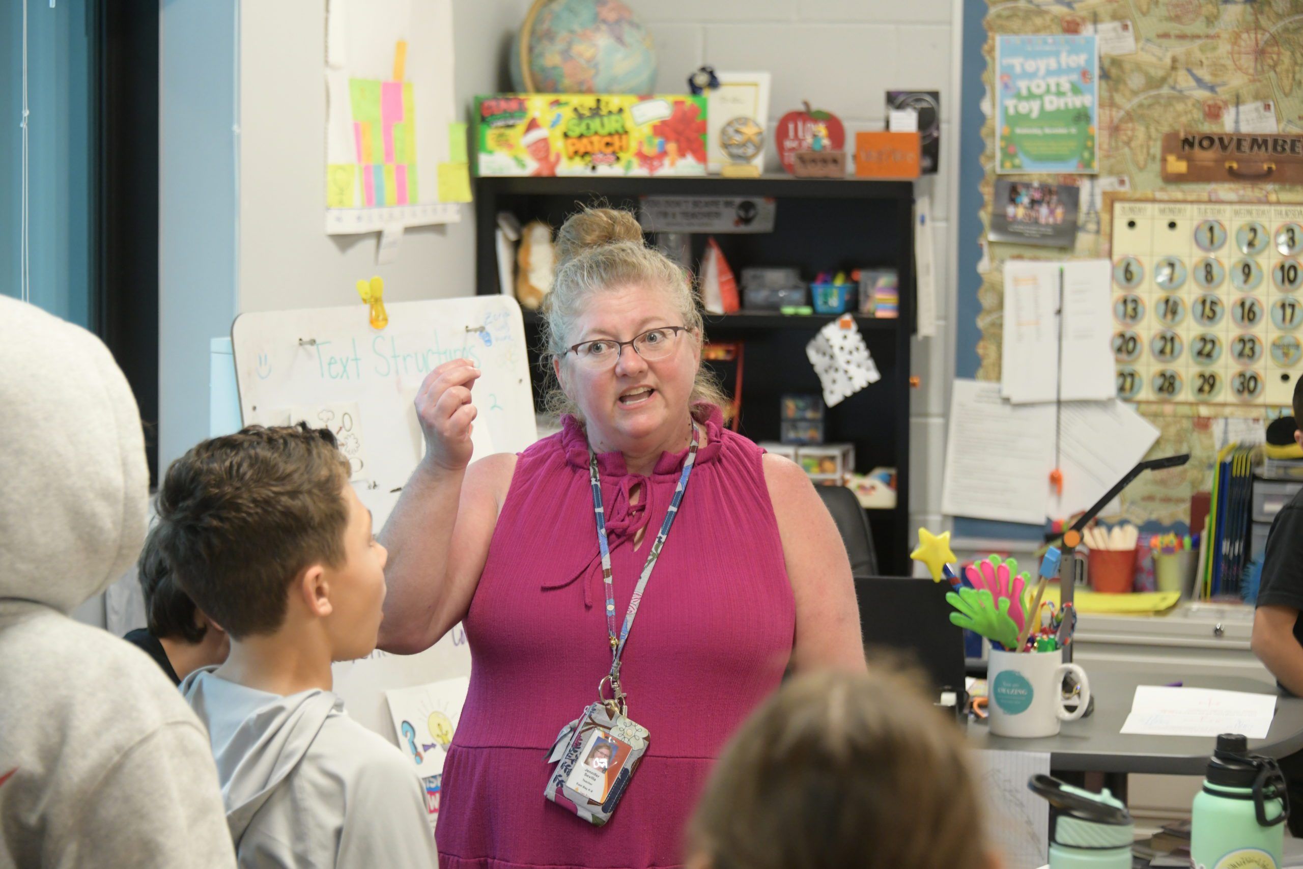 Jen Sevilla, East K8 teacher of the year, teaches a lesson on mathematics to her fourth grade class.