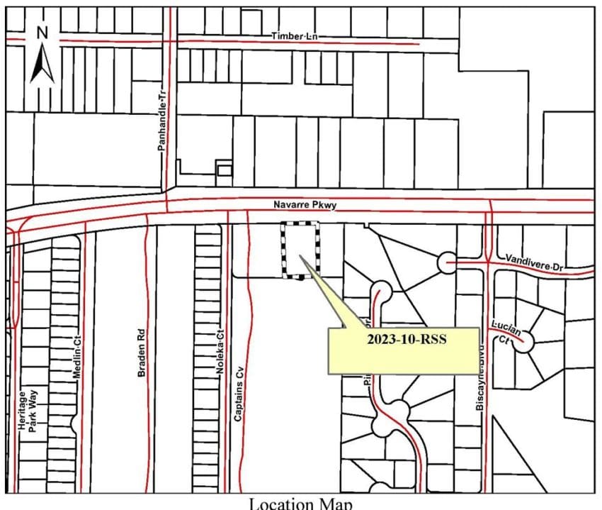 Buddy Page, on behalf of FNBT bank, appeared before the county commissioners Thursday on the zoning change request at 9200 Navarre Parkway.
