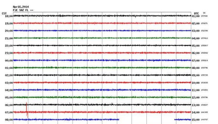 An abrupt spike was detected on seismic equipment based at Pensacola State College’s main campus during an April 16 weapons test at Eglin Air Force Base.