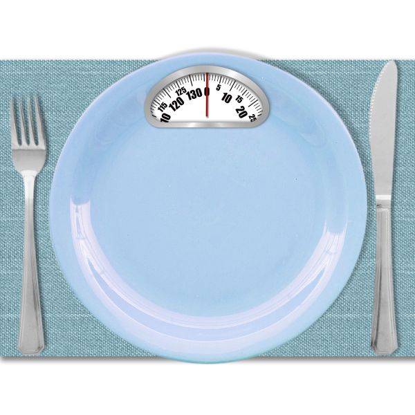 Diet concept. Plate with scales