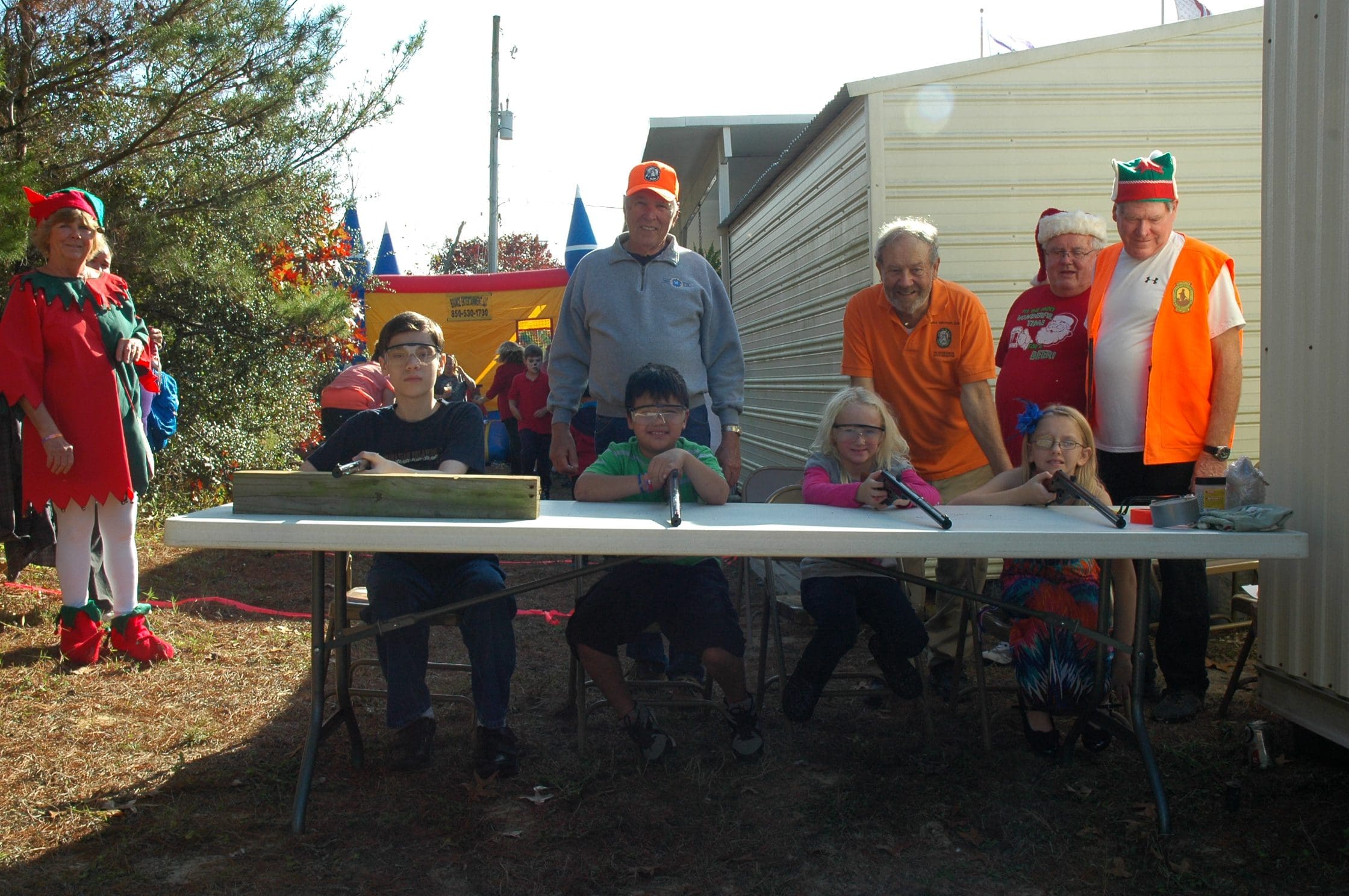 Elks Lodge members Toby Griner, Cal Boahm and Pat Schulte help kids take aim in this year’s turkey shoot.
