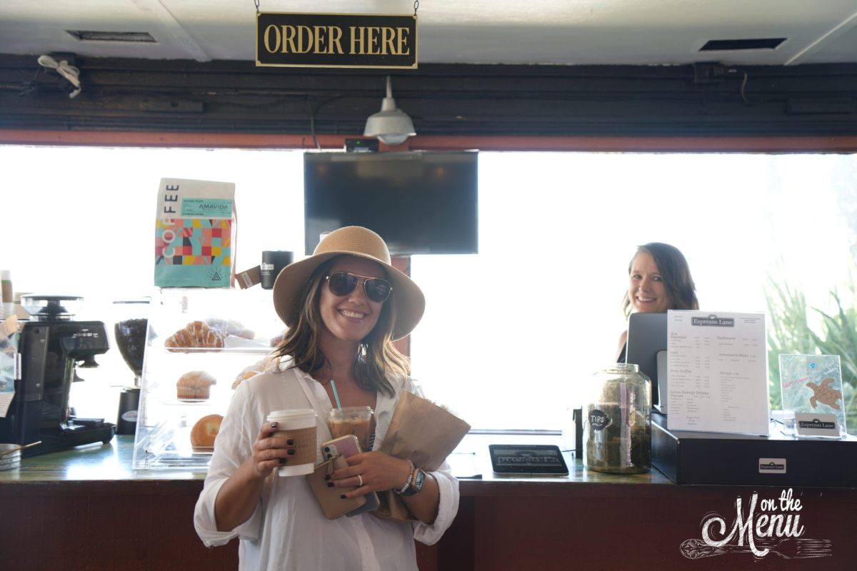 Espresso Lane is located inside of Broussard’s Bayou Grill on Navarre Beach and just opened this past June. When you walk in the doors, the coffee shop is directly to your right in a window-filled room decorated with beach art for sale.