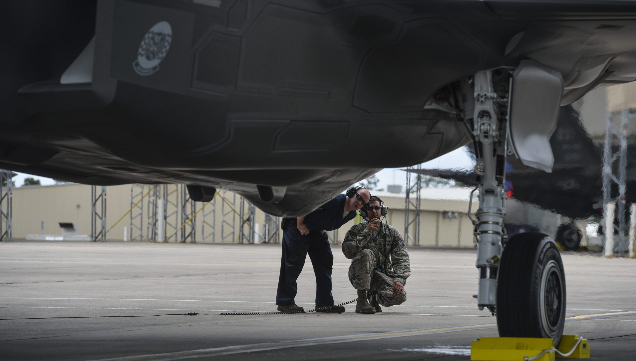 Airmen from the 58th Aircraft Maintenance Unit look over the 26th and final F-35A Lightning II assigned to the 33rd Fighter Wing May 28 at Eglin Air Force Base.