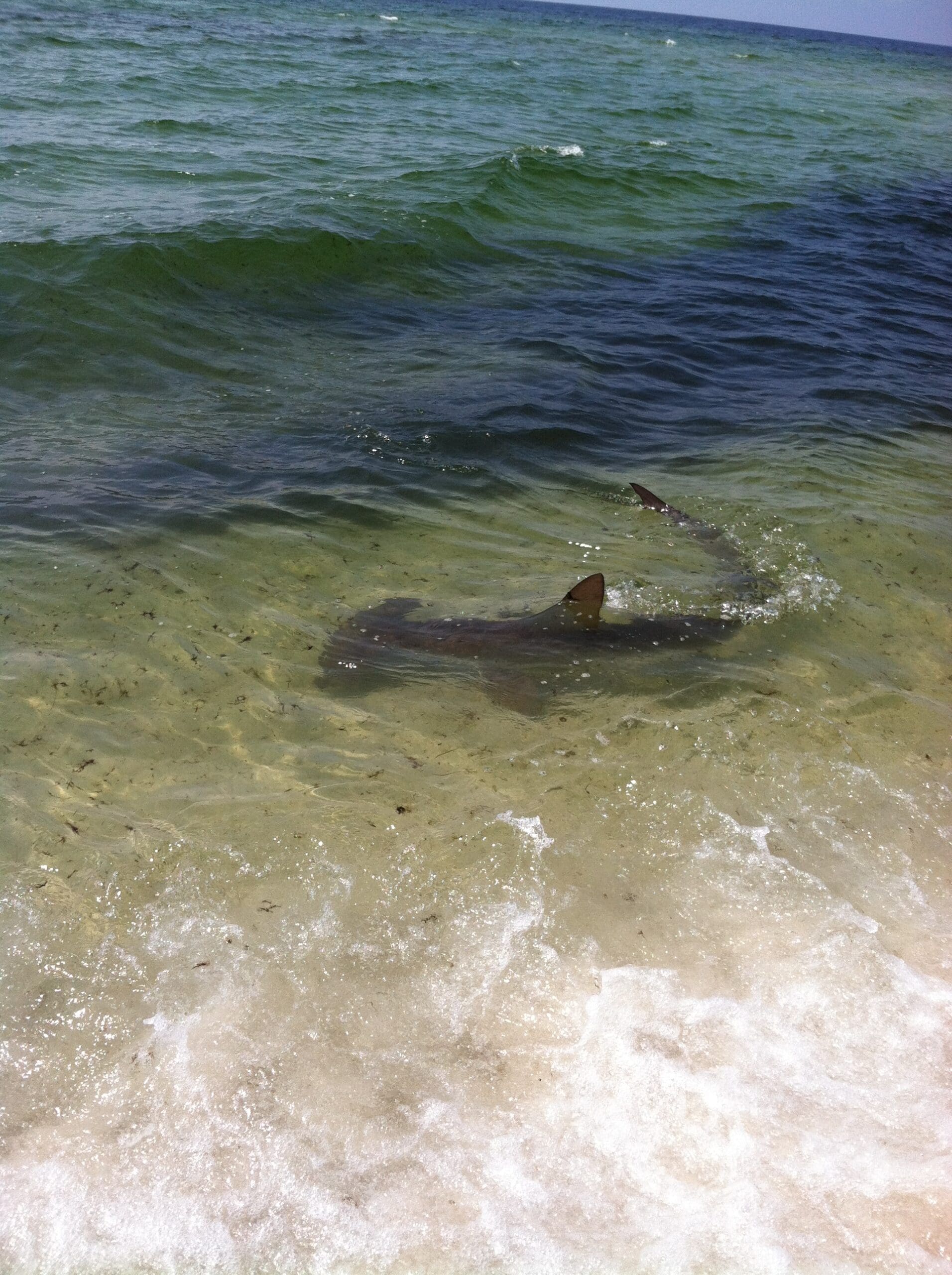 A family with plenty of beach experience and encounters with marine life, the Damrons didn’t get overly excited when they first saw a fin moving through the water and coming toward them last Thursday on Navarre Beach.