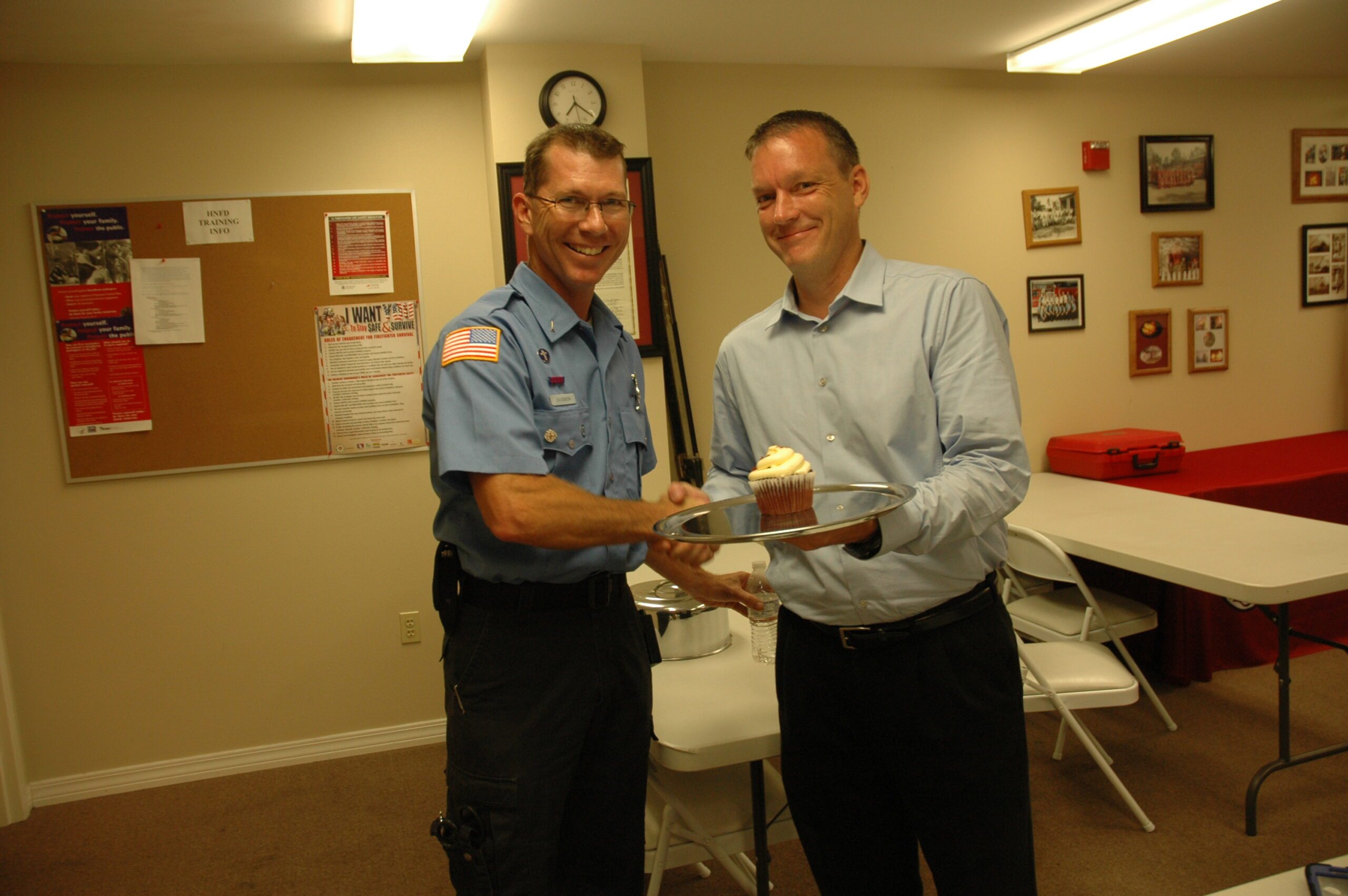 William Painter took the oath of office July 28 for Seat 4 of the Holley Navarre Board of Fire Commissioners. After the meeting, he was presented with a cupcake by Lt. Nathaniel Davidson. Painter said “Cupcake” was his first nickname as a firefighter.