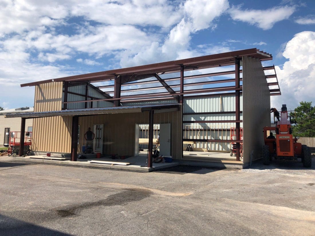 The Holley-Navarre Fire District annex is being built behind Station 1 on Esplanade Street. Photo by Wendy Victora Rudman