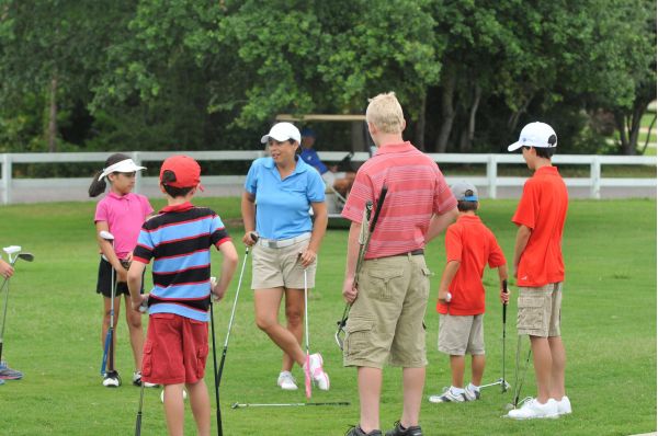 Luticia Boozer, the program director for the Northwest Florida Chapter of First Tee and the head girls golf coach at Navarre, talks with golfers during a First Tee practice session at Tiger Point Thursday.