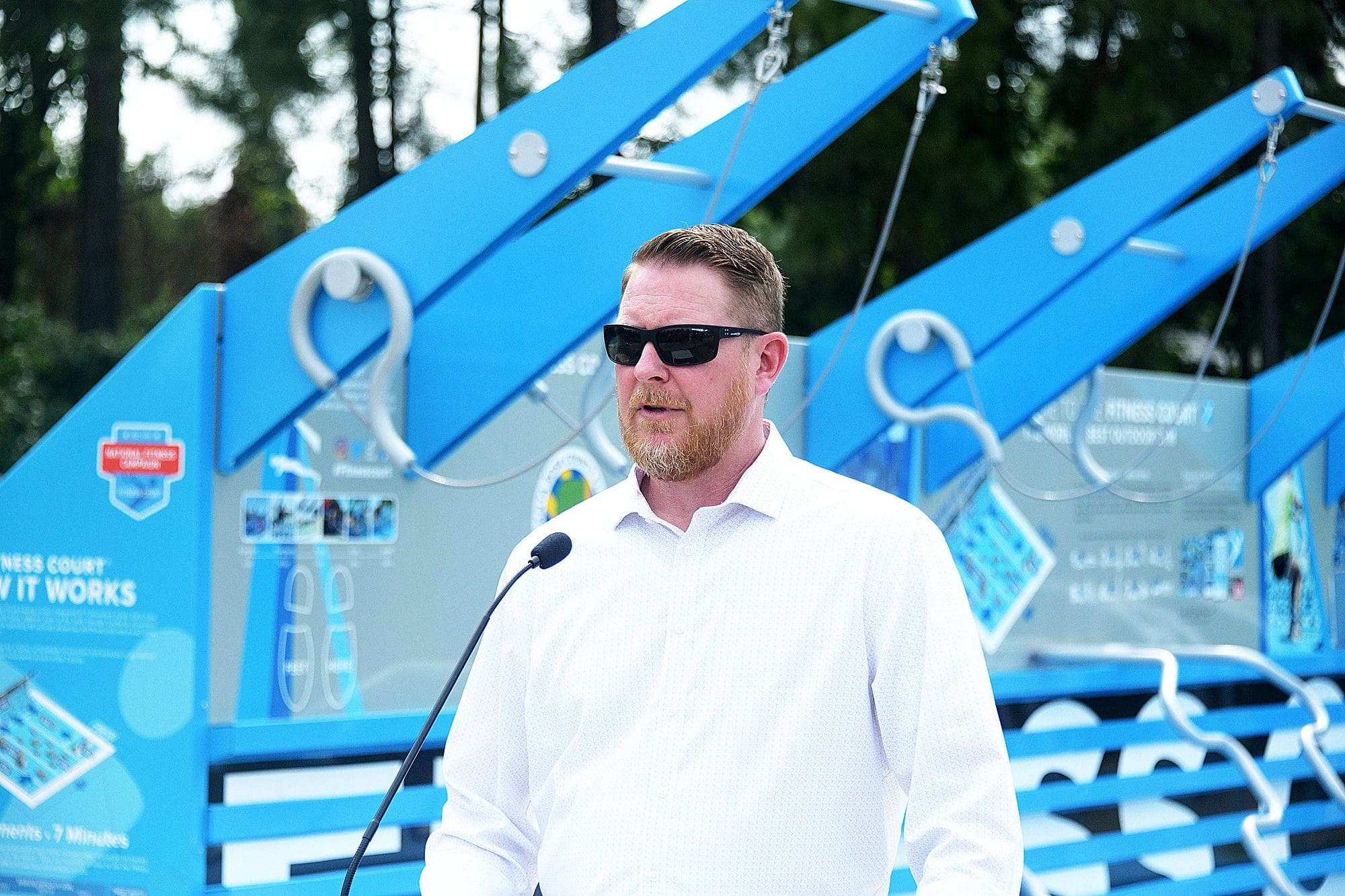 County Commissioner Colten Wright was the main speaker at the Tiger Point Fitness Court ribbon cutting. The fitness court is part of an overall push by Wright and other commissioners to bring more recreation opportunities to Santa Rosa County.