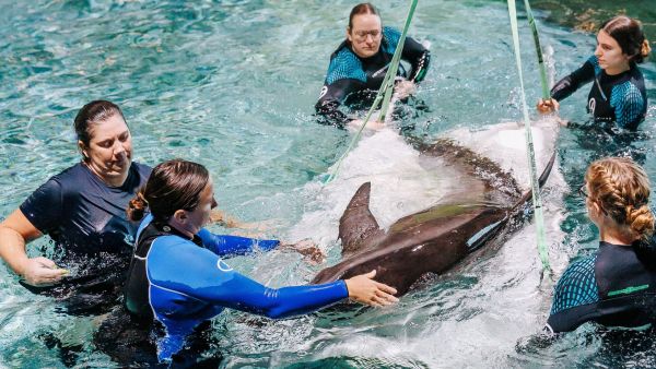 Four rough-toothed dolphins from Gulf World in Panama City were sent to Clearwater Marine Aquarium June 4.