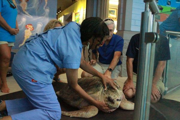Gigi, the blind loggerhead sea turtle that permanently resides at the Navarre Beach Sea Turtle Conservation Center (NBSTCC), has not been home in 15 days. Her three-foot-deep tank stands still and empty.