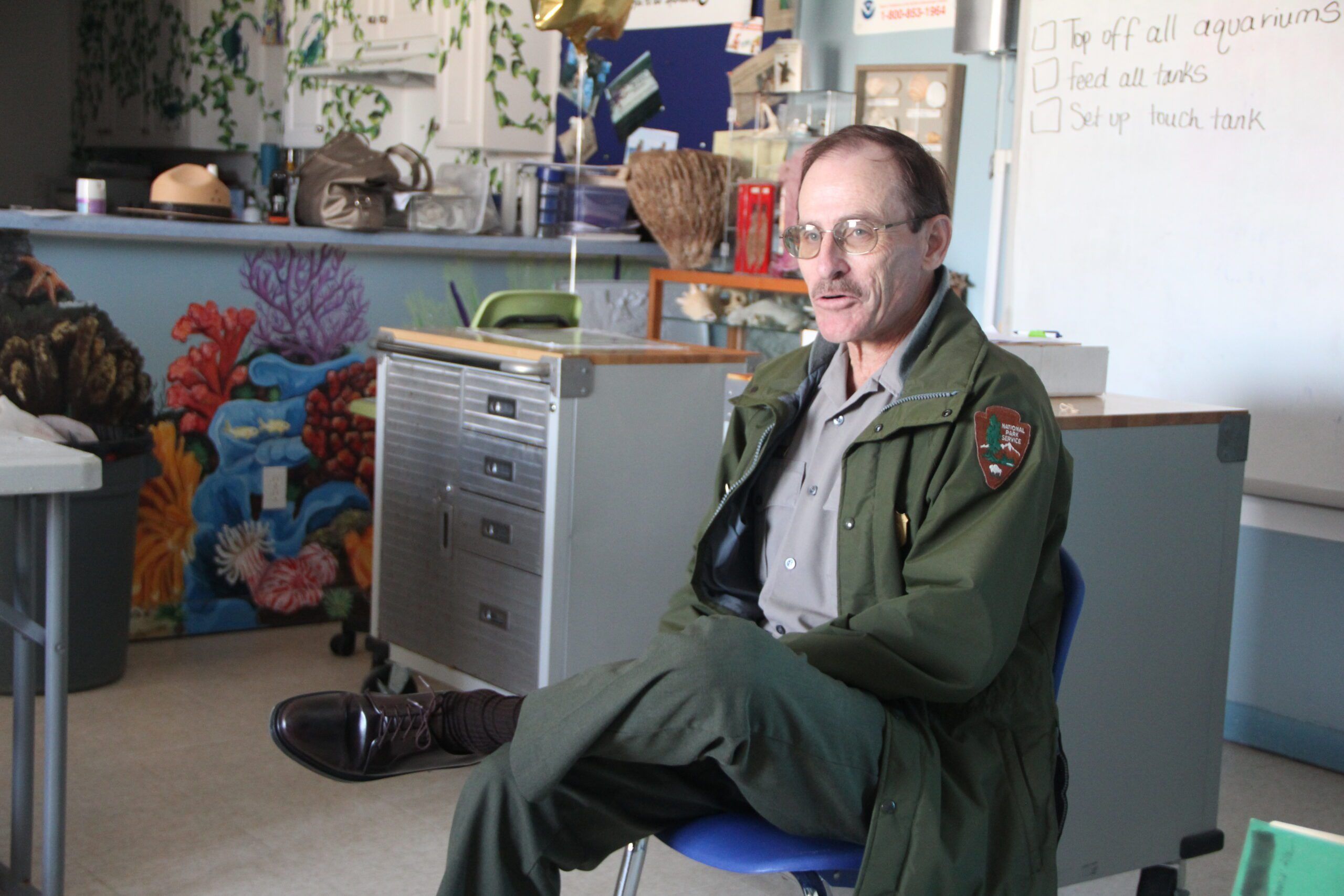 Gulf Islands National Seashore Superintendent Dan Brown relaxes during a chat with Navarre Beach Leaseholders and Residents Association members.