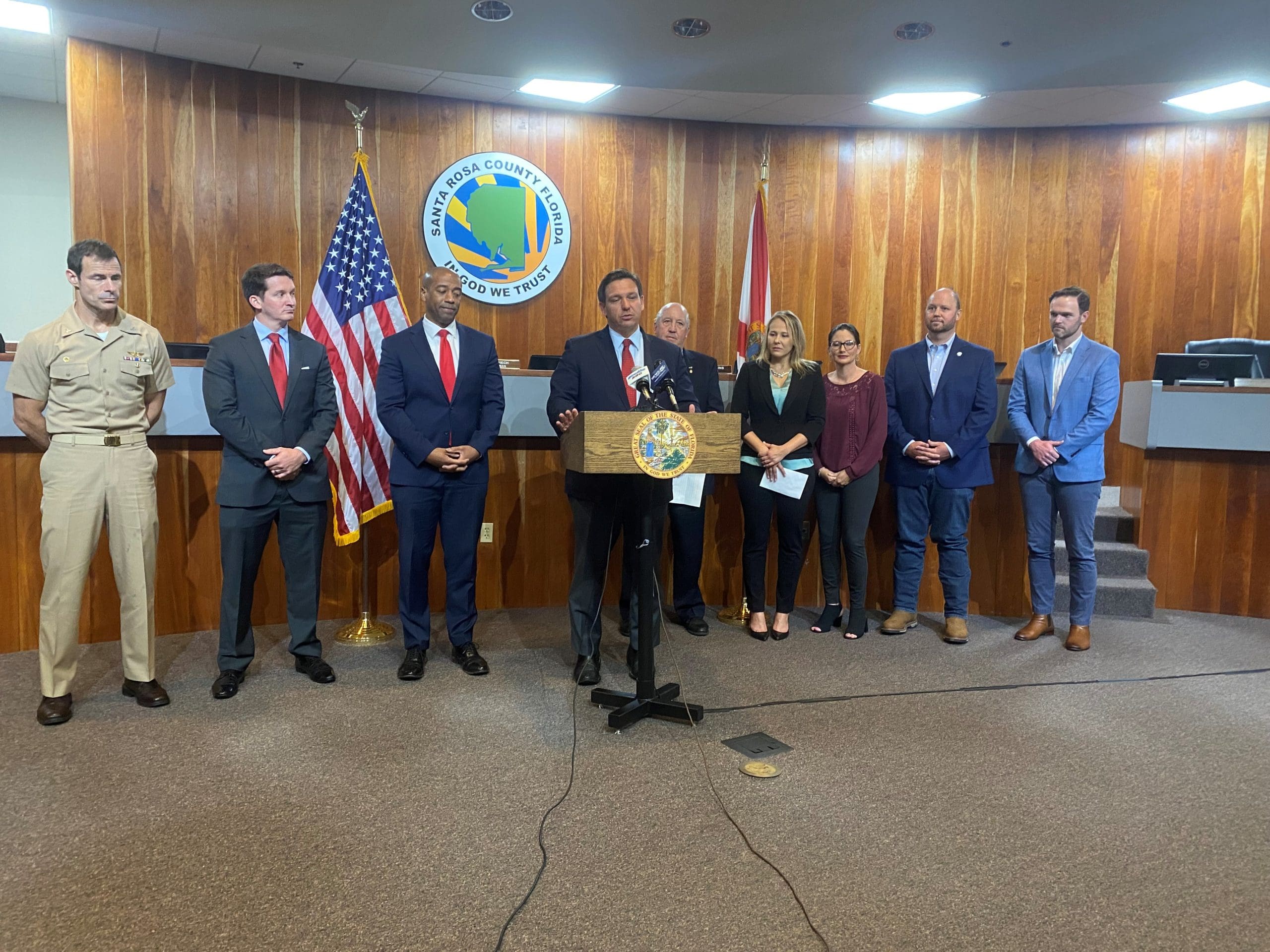 Gov. Ron DeSantis visited the Santa Rosa County Administrative Complex Wednesday morning to announce $3.4 million in grants to use to support local military missions. His press conference began at 11:35 and is ongoing. Check back for more information.