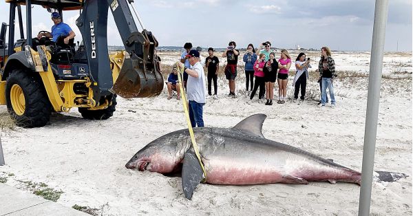 Joe Horton was eating breakfast at Andy D’s Friday morning, Feb. 23, and he heard that a great white shark had washed ashore on Navarre Beach. “You’ve seen pictures of sharks from National Geographic,
