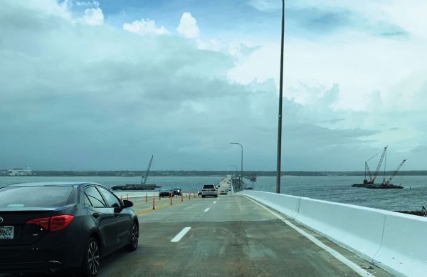 Cars coming in and out of Gulf Breeze now have two lanes in each direction on the Pensacola Bay Bridge. Photo by Dickie Williams