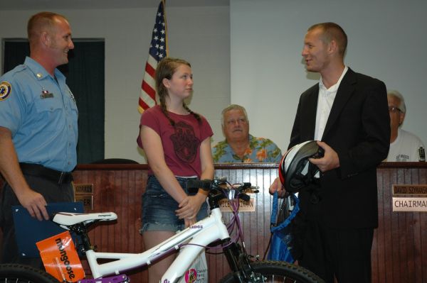 Thirteen-year-old Megan Sydow was the first recipient of the Midway Fire District’s Citizen Safety award. Sydow received the award in recognition of her persistence in wearing a helmet while riding her bike.