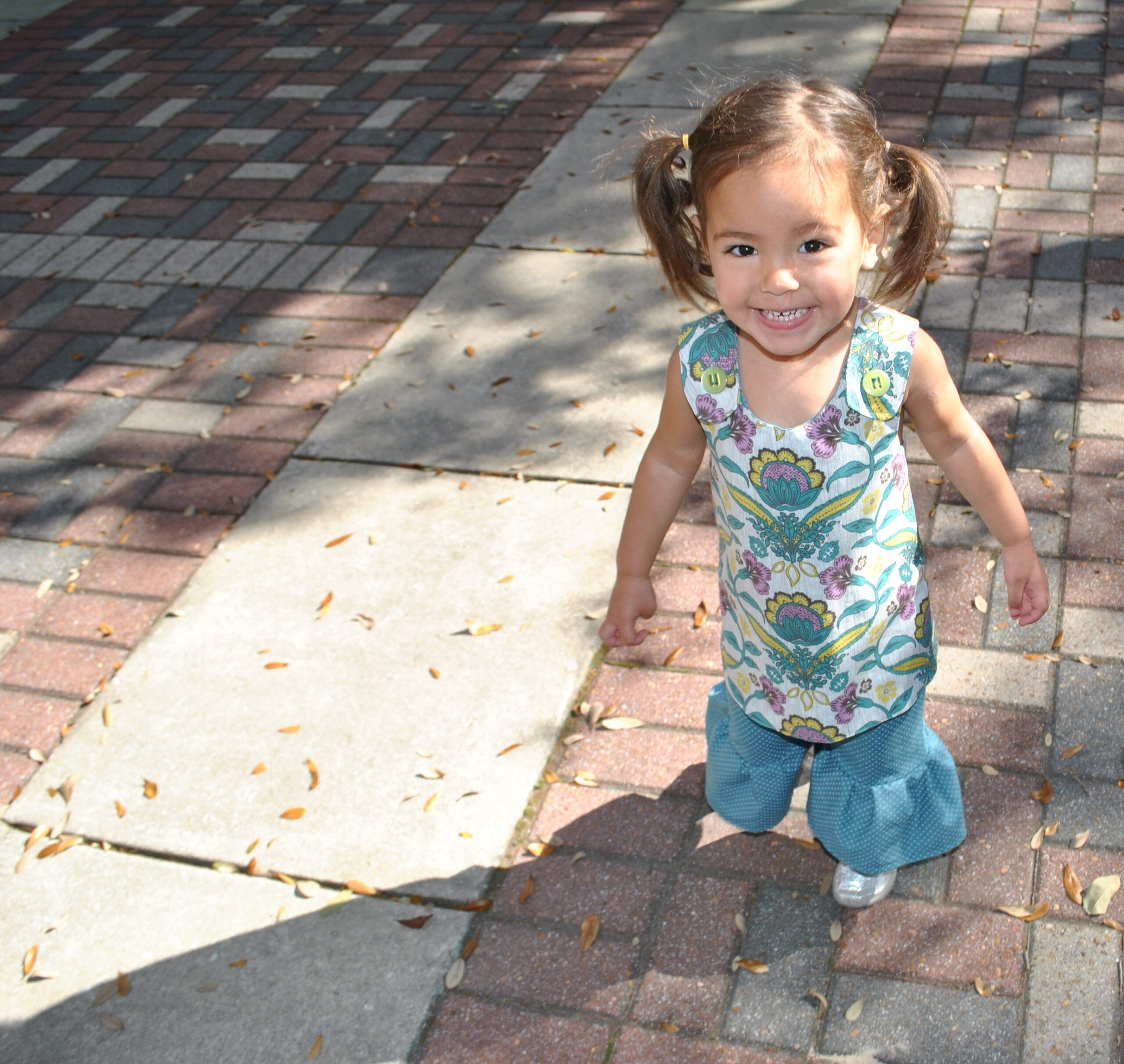 Children’s clothes handmade by Amanda Sansom are seen modeled on her daughter, Brooklynne, who was the inspiration for Sansom’s “Ella Louis Clothing” business.