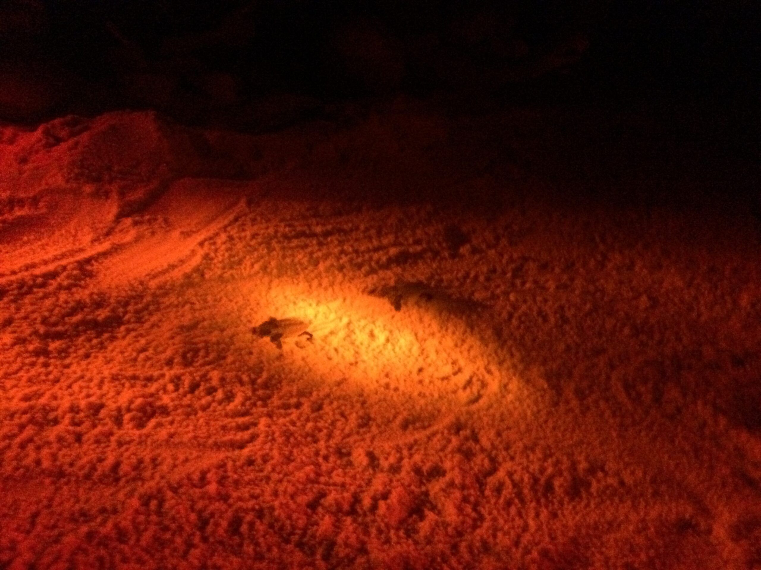 The sound of rainfall. That’s what the turtle whisperers listen for to determine when baby turtles are going to make their debut.