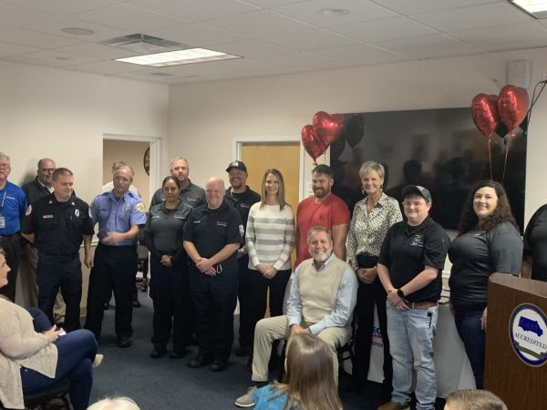 Richard McCool, 67, smiled broadly before making his final remark to the EMTs, dispatchers, drivers and friends gathered in his honor Friday at LifeGuard Ambulance in Milton.