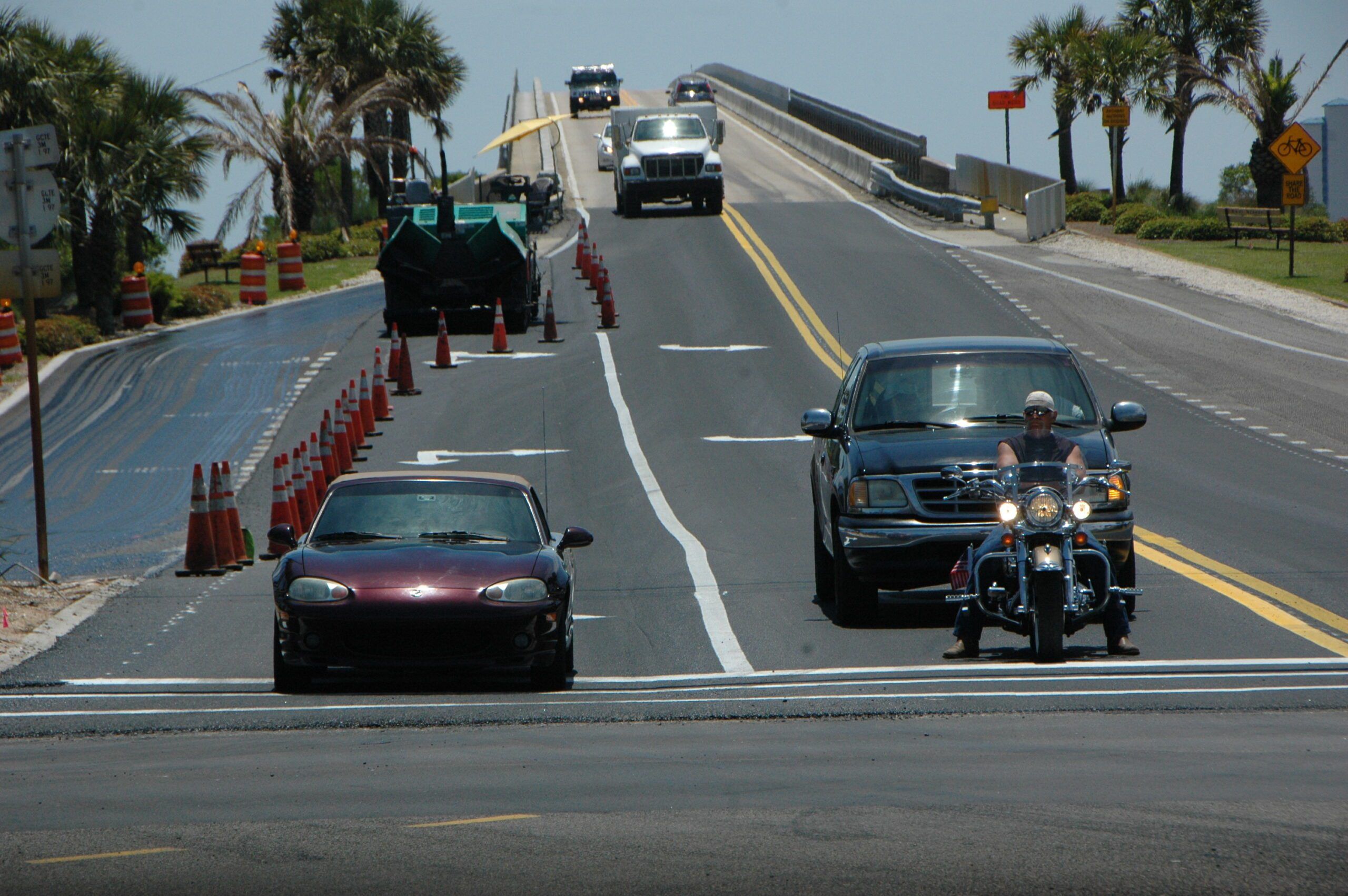 Motorists leaving Navarre Beach May 7 had an extra lane to use for turning westbound on Highway 98.