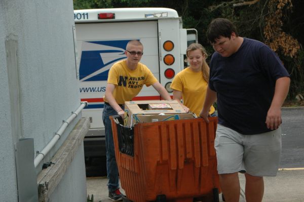 Navarre High School students Travis Suggs, Cody Howard and Allison Singletary take donated food items to a moving truck May 10 at the Gulf Breeze Post Office as part of the annual “Stamp Out Hunger” campaign.