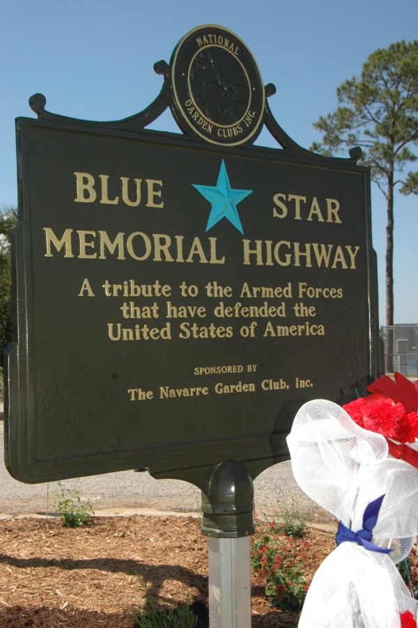 In a classic case of “If first you don’t succeed, try, try again,” members of the Navarre Garden Club, along with active duty and retired military personnel happily unveiled May 16 a new Blue Star Memorial Highway marker in Navarre Park. The national program honors all men and women who serve our country and the local marker designates Highway 98