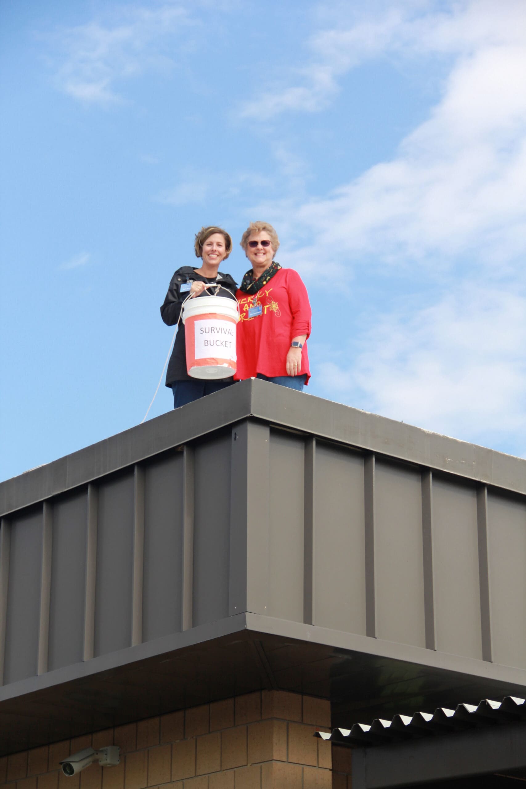 It’s not a bird or a plane, just two Holley Navarre Intermediate School administrators on top of the school.