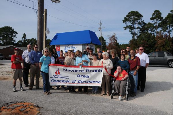 The Arc of the Emerald Coast staff members cut the ribbon with Navarre Beach Area Chamber of Commerce