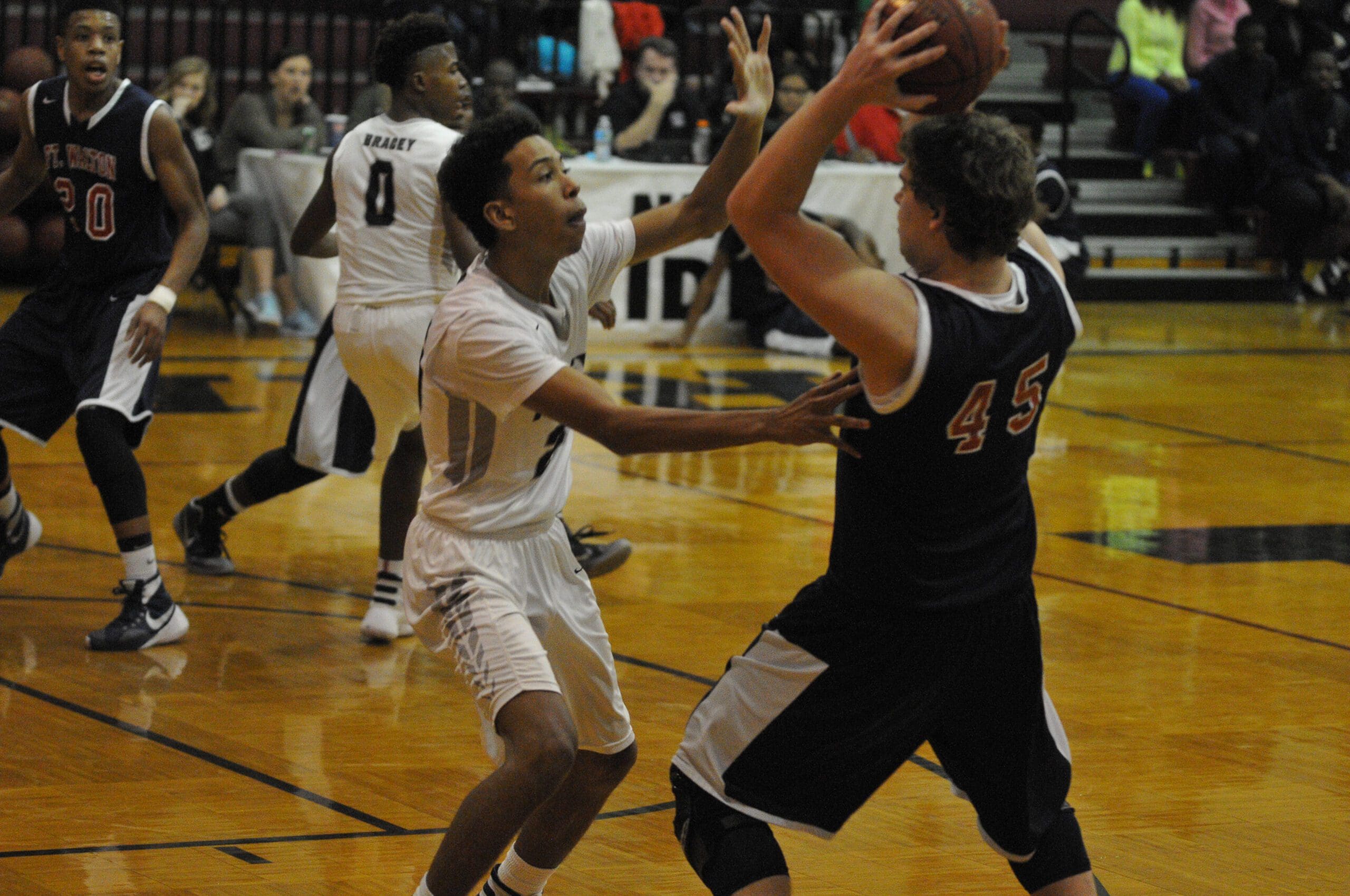 Dominic Riddle applies defensive pressure on Fort Walton’s Ethan Lipnicky during a Jan. 12 game against the Vikings.