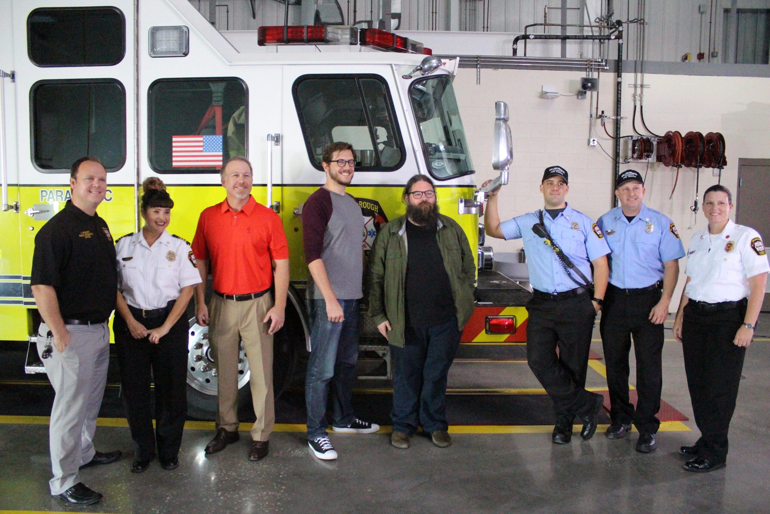Kevin Delaney and Nick Householder pose with Hillsborough County fire rescue.