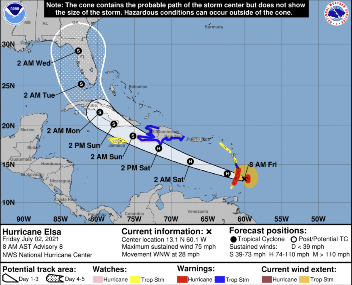 National Hurricane Center’s Friday morning forecast for now-Hurricane Elsa.