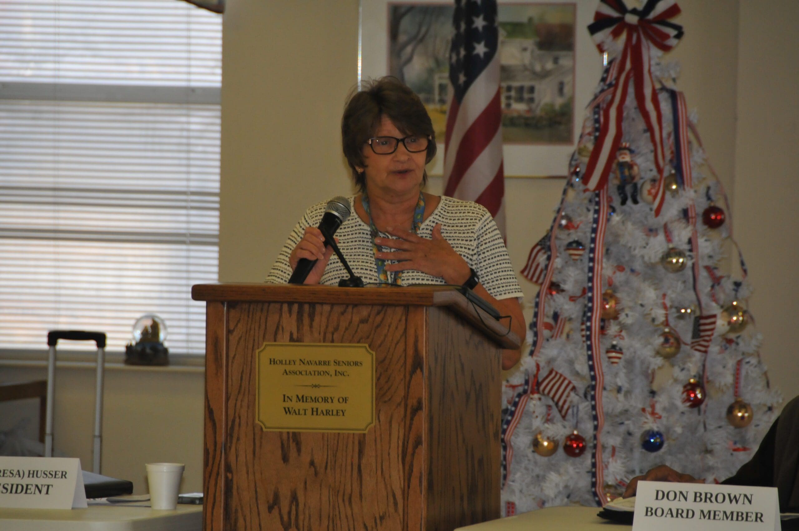 During the Holley Navarre Senior Center’s general meeting Friday afternoon, new board president TJ (Teresa) Husser turned on music at one point.