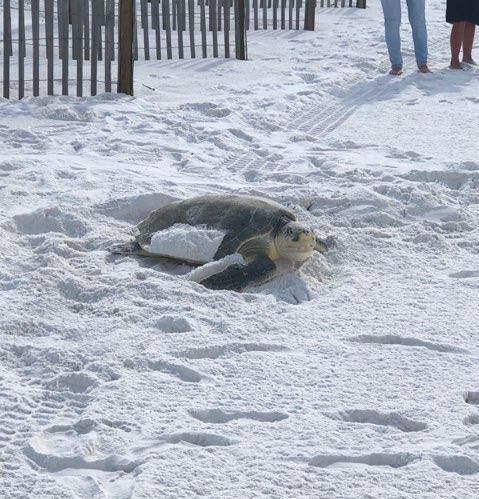 Loggerhead turtle makes its way across the sand of an Emerald Coast Beach.