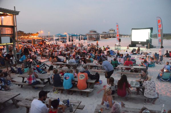 Windjammers on the Pier hosted the movie night June 15, and owners Ken and Tamara Fountain plan to have many more this summer.