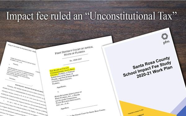In a ruling released July 28, the State of Florida First District Court of Appeal ruled against the appeal by Santa Rosa County and the Santa Rosa County School District, which imposed an impact fee on new home construction intended to fund new schools and help with infrastructure needs.