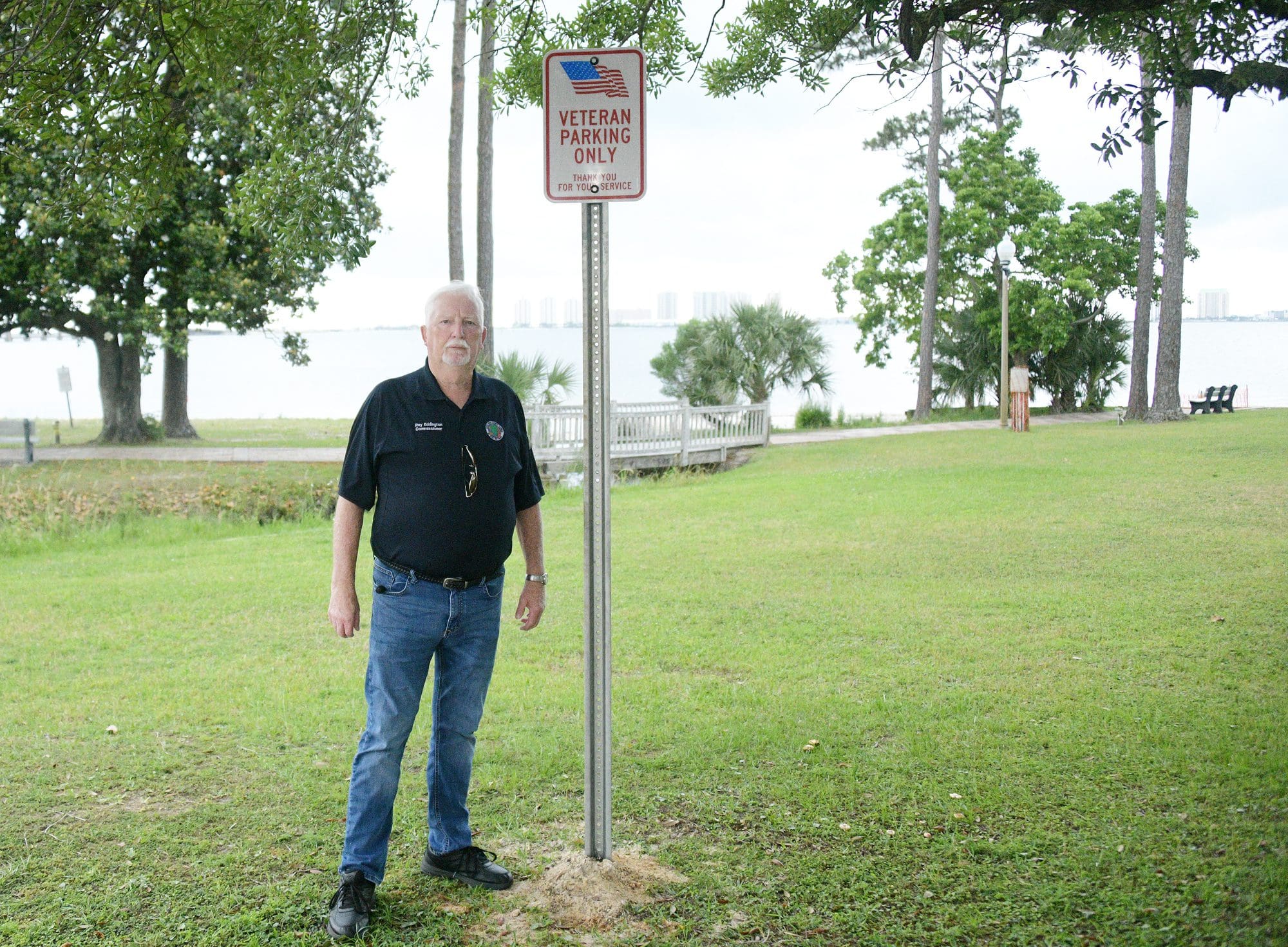 District 4 Commissioner Ray Eddington helped lead the effort to provide veterans parking spaces as county facilities. Put into motion by a couple of Santa Rosa County residents, Eddington contacted Assistant County Administrator Brad Baker to see what they could do to add the parking spaces. Baker and the Public Works staff helped Eddington order the parking signs and they installed the signs.