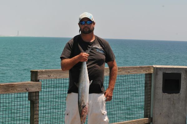 Brandon Carr shows off the King mackerel he caught at the Navarre Fishing Pier Friday afternoon. He planned to use the fish as bait.