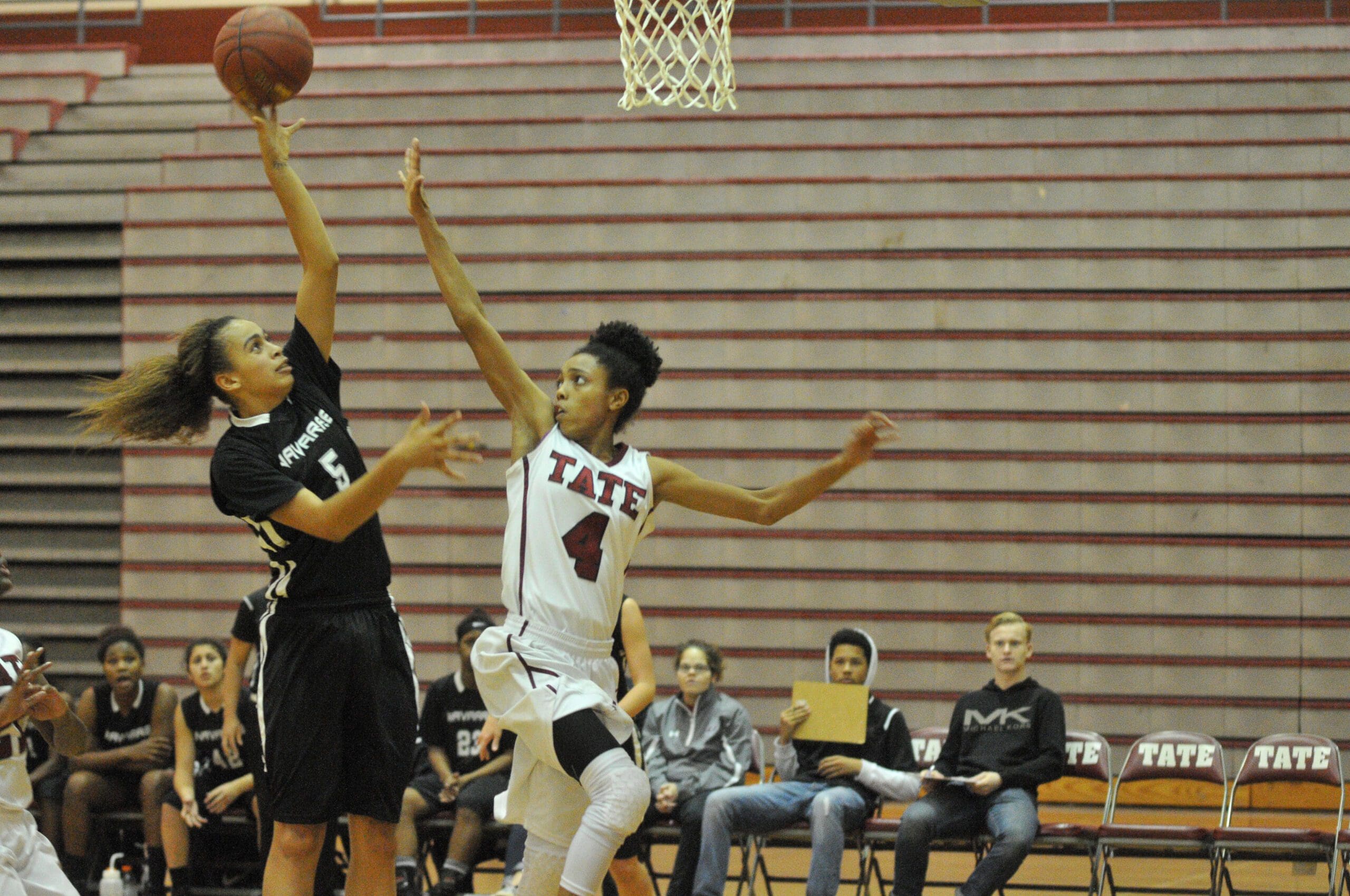 Amber Leggett goes up for a shot in Navarre’s game against Tate Thursday.