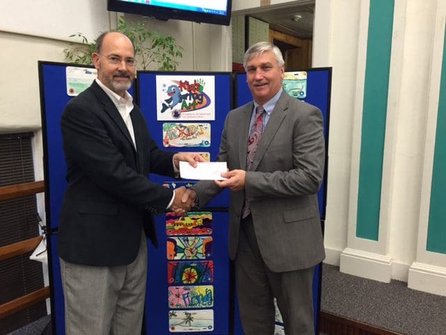 Santa Rosa County Tax Collector Stan Nichols presents Tim Wyrosdick Santa Rosa School superintendent with a check for $9,240 from Kids Tag Art, a program initiated by the tax collector’s office and sponsored by several local businesses.