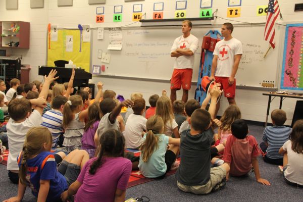 Last year, the Navarre Beach lifeguards visited several area elementary schools, teaching water safety to the students. The visits were so successful that several area schools requested a visit from the lifeguards for career day.