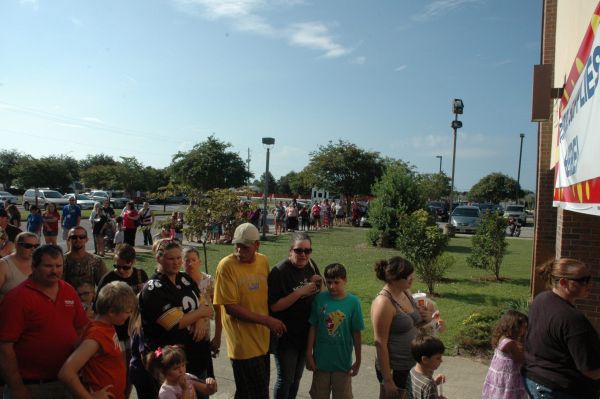 Parents and their school-age children stood in line an hour before the doors opened to Navarre United Methodist Church’s annual Back to School Bash.