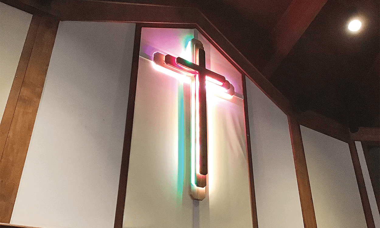 A cross is typically the centerpiece of a church sanctuary and the focal point when someone walks through the doors.