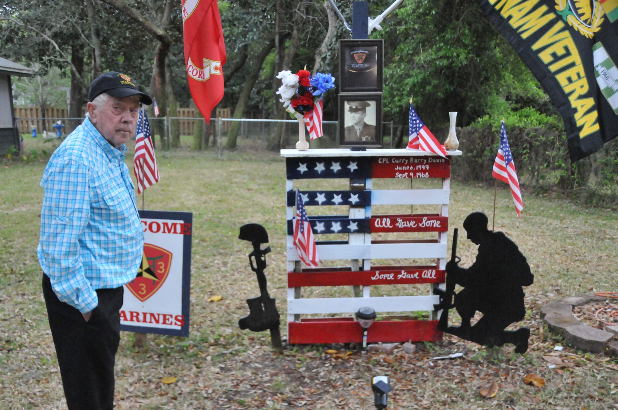 In the front yard of the home of Billy Davis, there sits a memorial. It’s set up to honor the memory of Corporal Curry Barry Davis, the nephew of Billy.