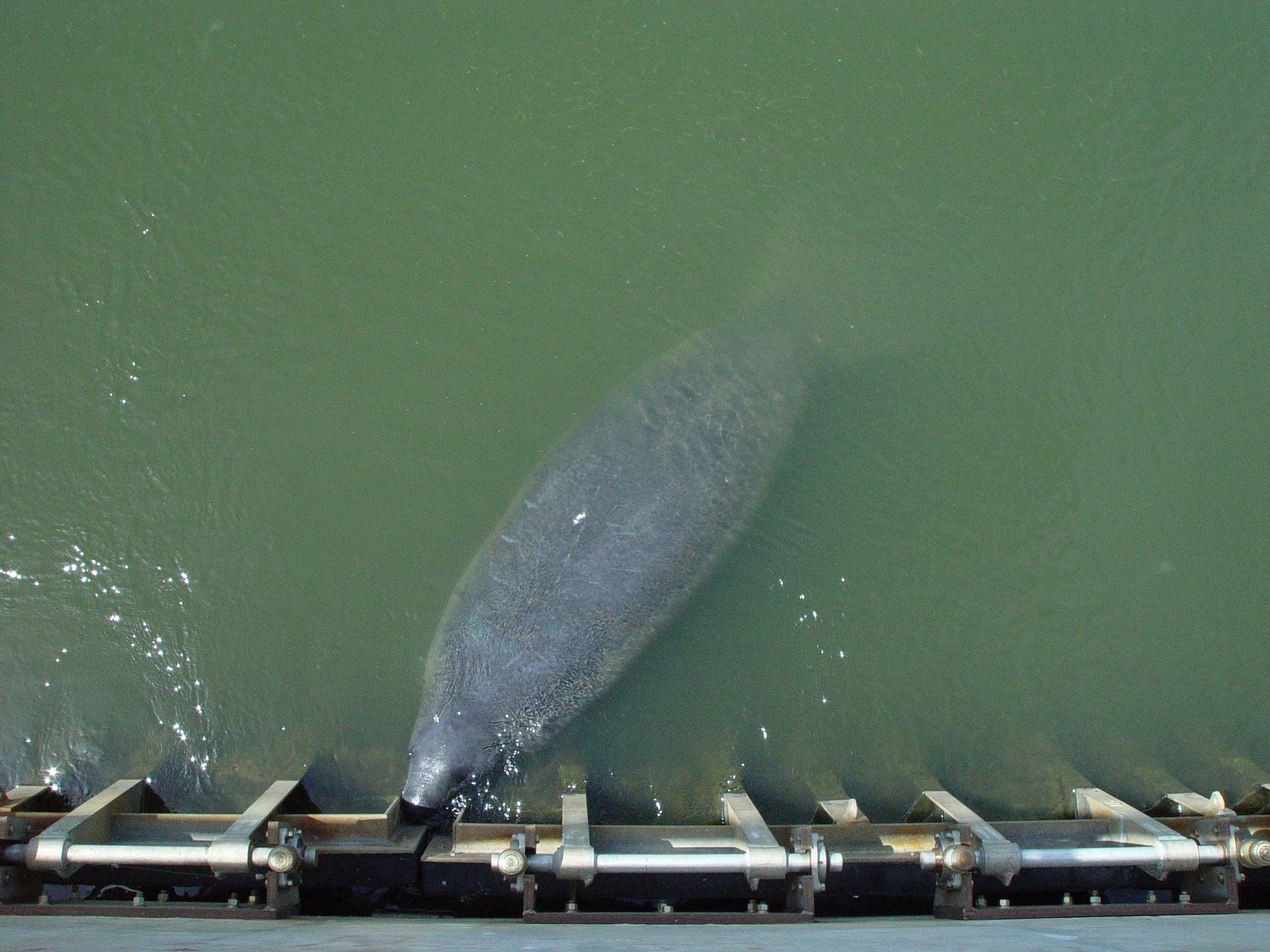 A manatee is pictures at Deer Point Dam in the Florida Panhandle.