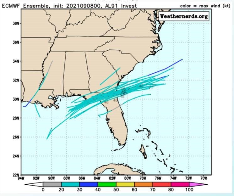 A system of low-pressure in the Gulf of Mexico, referred to as “Invest 91L”, is expected to bring rain and dangerous surf conditions to the area on its way across the Big Bend of Florida.