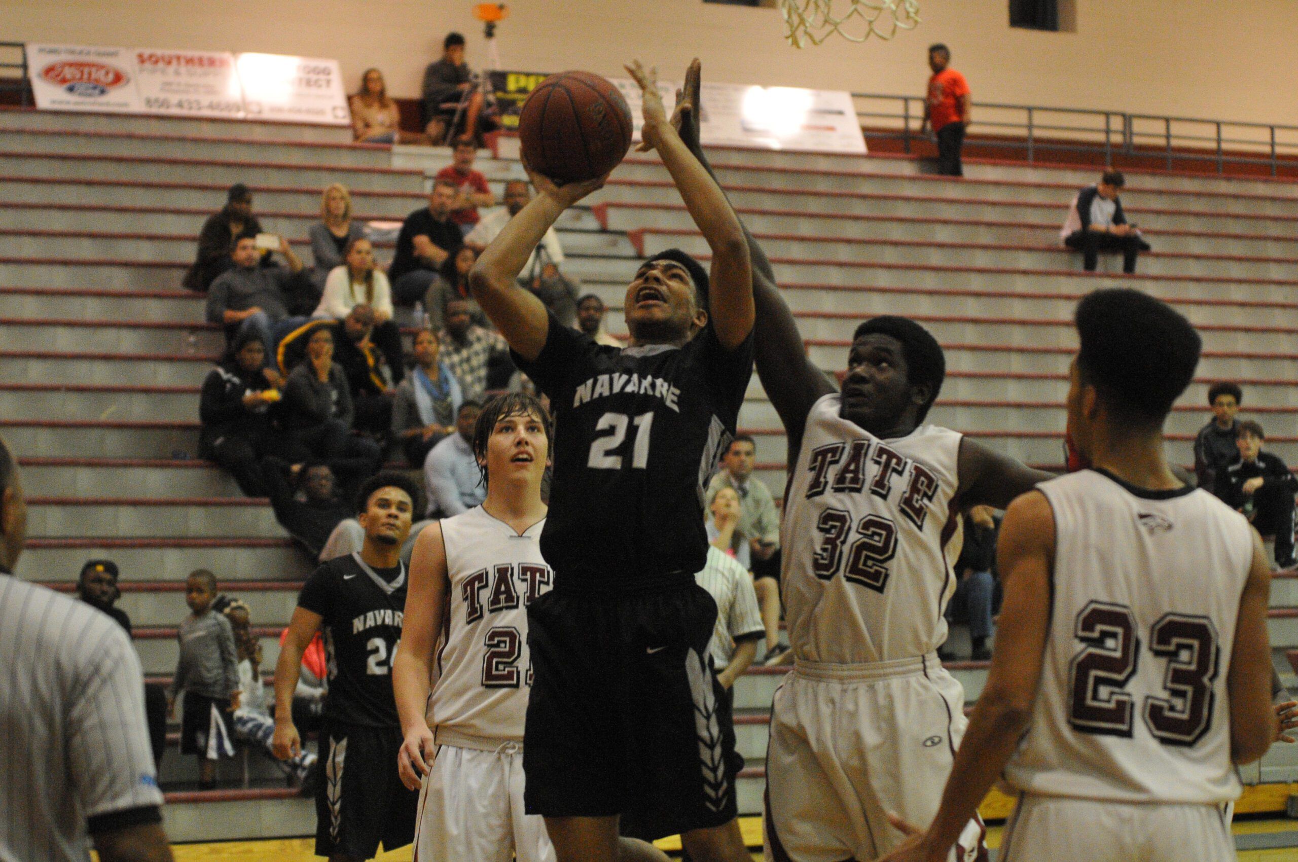 Tre Baker rises up for a shot near the basket in Navarre’s game against Tate.